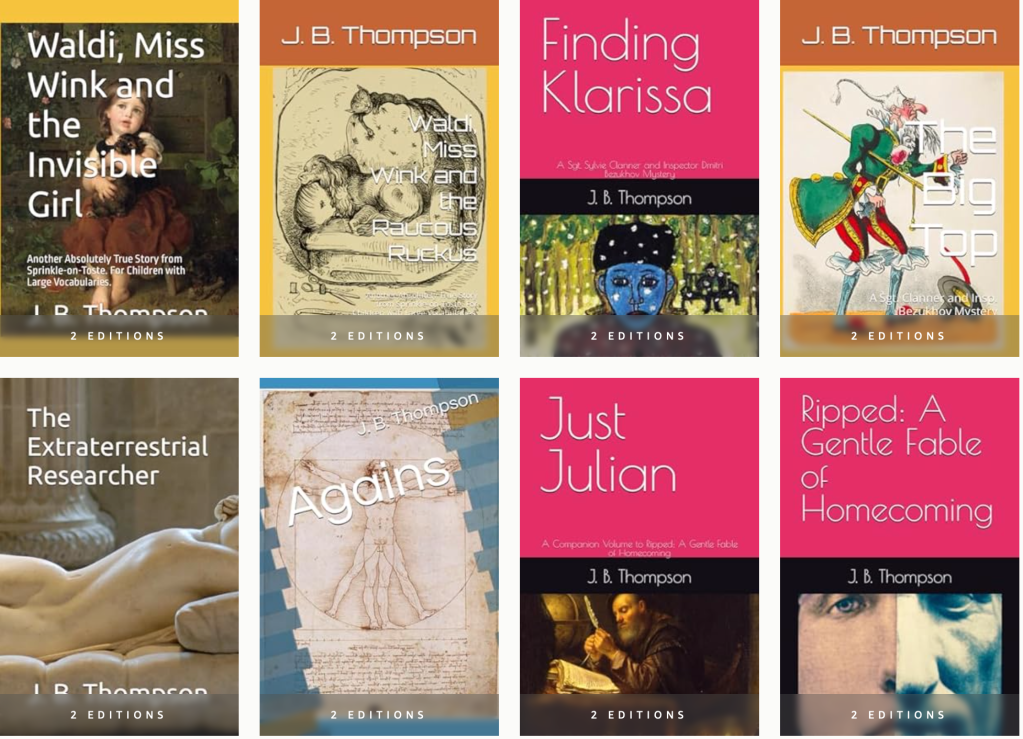 Buy J. B. Thompson’s Books (and those of his good friends Dr. Randolph Pandolphian and H. M. Meierhoff) at Amazon.com and Amazon.ca and other Amazon sites.